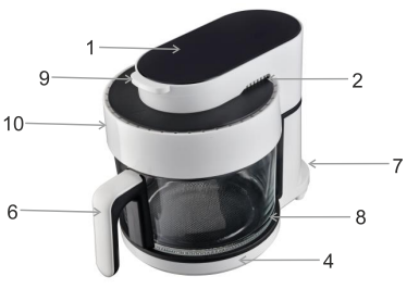 - The glass container (8) is dishwasher safe. Do not wash the grate (5) in the dishwasher.