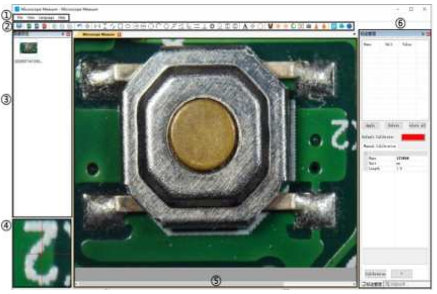 - Main operating window: window shows the full view from the microscIt’sAnIts also the place where users do measuring and image analysis.