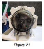 - Slide the complete assembly over the motor shaft and attach it to the pump unit. (Figure 21) Ensure the pump shaft is seated in the pump head housing bushing.