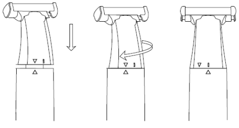 Align the indicator “Δ” to insert the trimmer head. Rotate the trimmer head until the indicator “I” is pointed to “Δ”.