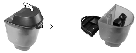 - Remove the Clean Water Tank by grasping the handle with your fingertips, then tilt the water tank to the left and lift straight up and out.