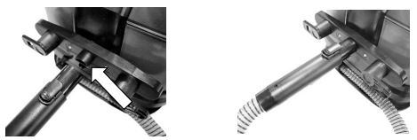 - When finished, release the trigger and with the vacuum still running, pull the handle off the spigot and hold it up high to allow the residual water in the flexible tube to drain down and be sucked into the dirty water tank.