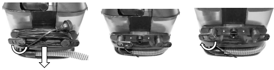 - Wrap the flexible hose around the appliance and clip the handle into its hol, der as shown.