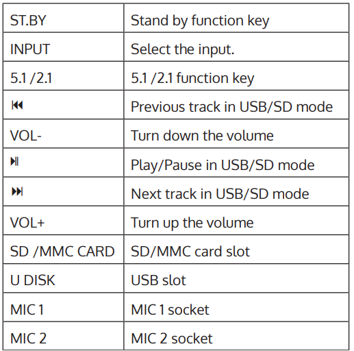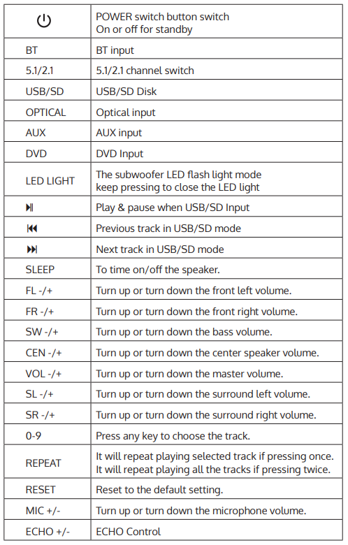 - Subwoofer speaker 1 x