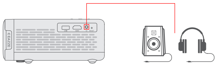 You can connect the projector to a wireless Bluetooth speaker or headphones.