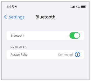 - Access your mobile device’s Bluetooth settings and activate Bluetooth. Search for Aurzen Roku (or the projector name if you have renamed it) in the available devices list and pair your mobile device with the projector.