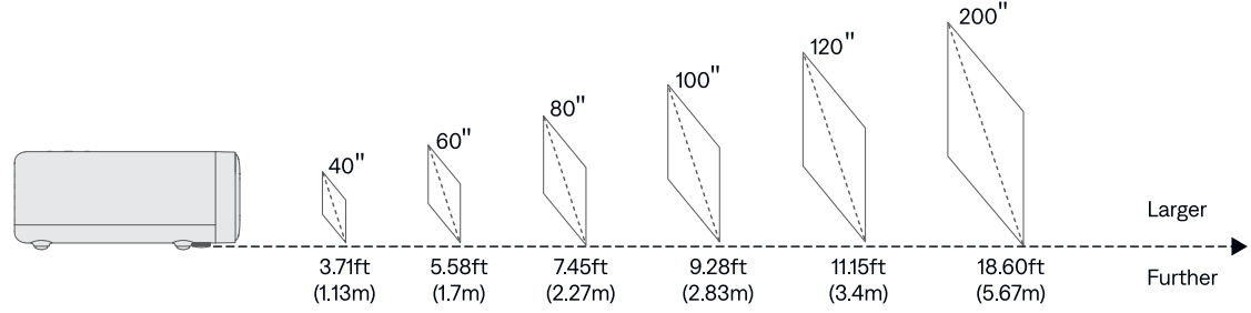 - For optimal image quality, we recommend a projection size of 80*. Position the projector 7.45ft (2.27m) away from the wall or screen.