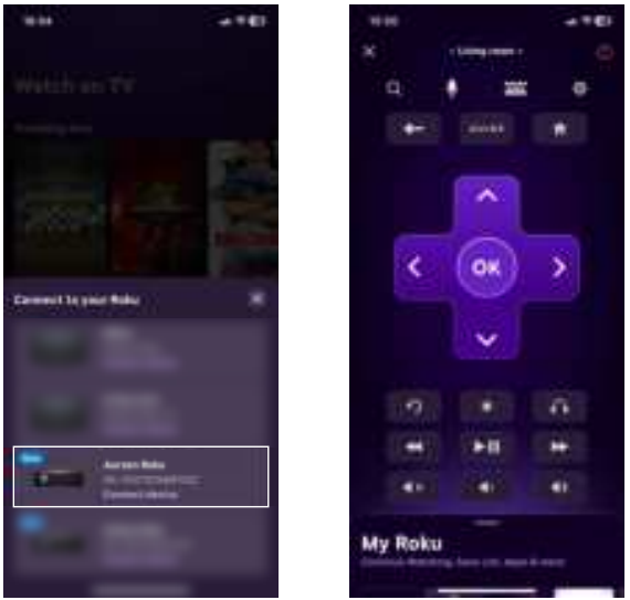 - Choose Aurzen Roku (or the projector name if you have renamed it) from the device list to connect. Then the remote interface will appear.