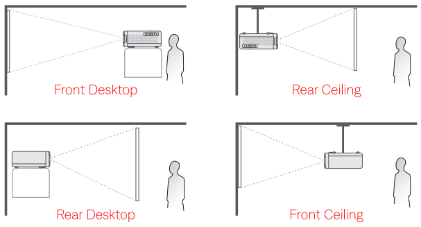 - Select the appropriate projection orientation during the guided setup process or via Home > Settings > Projector settings > Orientation.