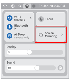 - Ensure the projector is on its homepage. On your Mac, click Control Center & in the upper right corner, select Screen Mirroring.