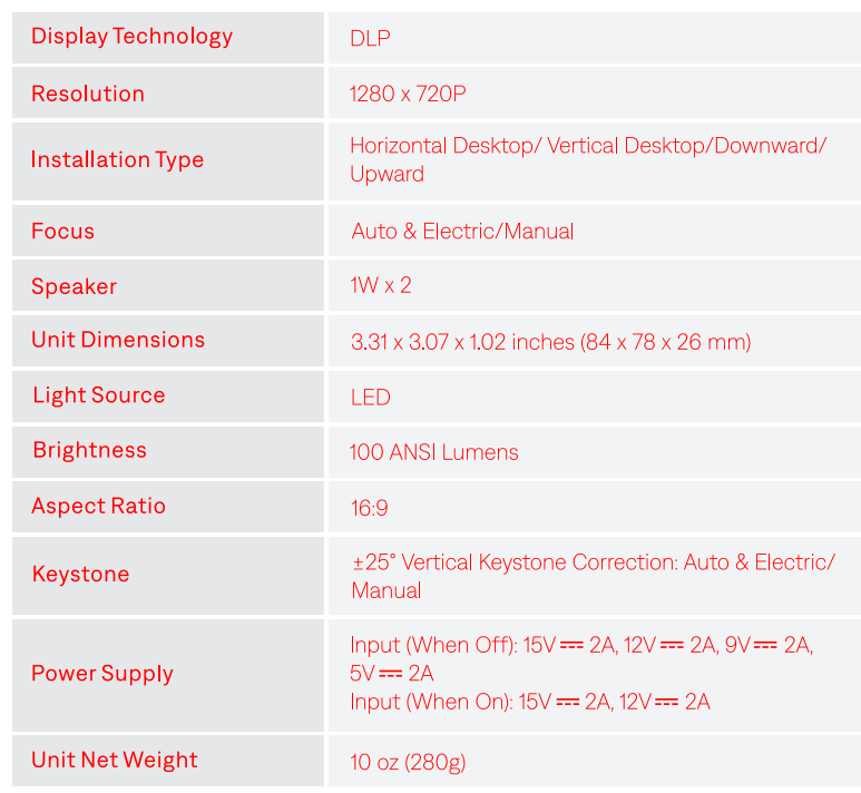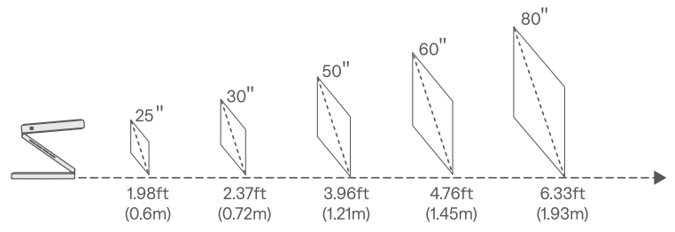 - For optimal image quality, we recommend a projection size of 40-60 inches.
