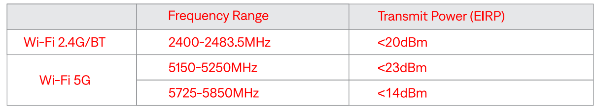 The below radio frequency specification only aappliesto the EU and UK regions: