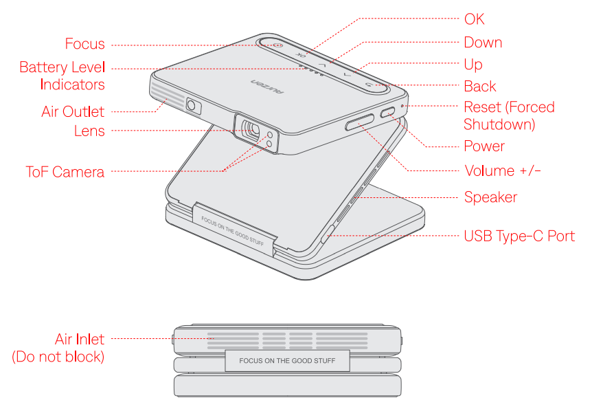 - Power On/Off Press and hold the Power Button for 3 seconds to turn on the projector; press and hold it for 3 seconds to turn it off.