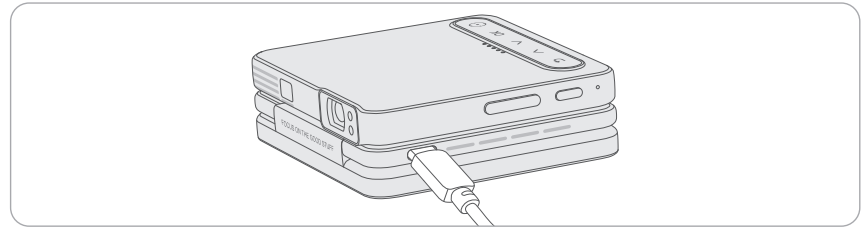 - Connect the projector to a power supply using the provided charging cable. Once fully charged, you can keep it connected or unplug it.