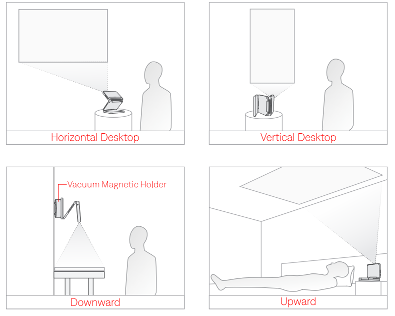 - Unfold the projector to your desired angle and place it on your desired surface.