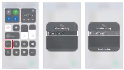 - Screen Mirroring. Select ZIP-XXXXXXXX from the search list to connect.
