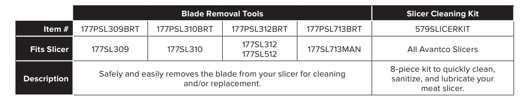 Ans: Yes, Avantco or approved distributors offer new blades, sharpening stones, and parts. Use original components at all times for performance and safety.