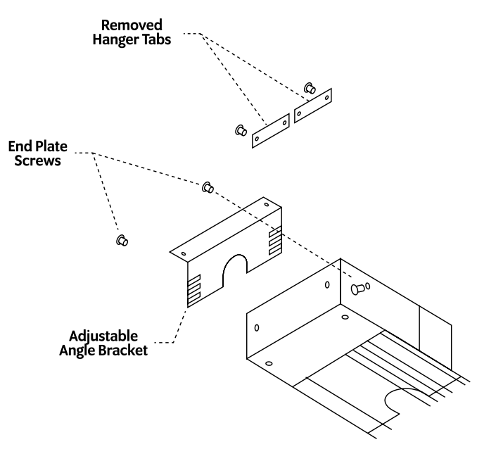 - Align the adjustable angle bracket with the end plate mounting holes on the unit. Secure the angle bracket with the previously removed end plate screws.