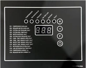 - Ice Making Stage: Default display of the compressor current (unit: A). Press the function key to alternately display the reducer current (unit: A) and condensate temperature (unit: ºC).