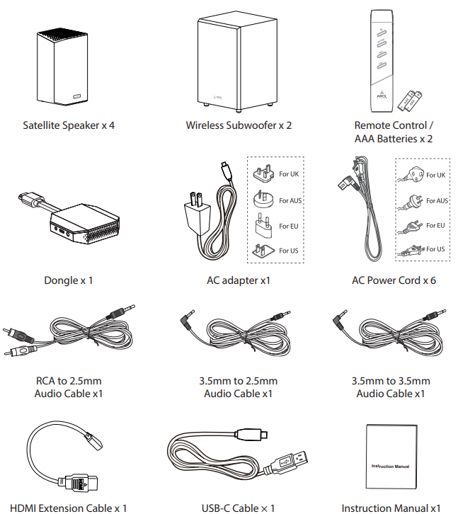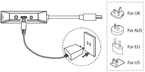 • Adapter Connect Power Connect the adapter to the power supply port of the Dongle and then to a main socket.AWOL-VISION-ThunderBeat-Home-Theater-Sound-System-FIGURE-13