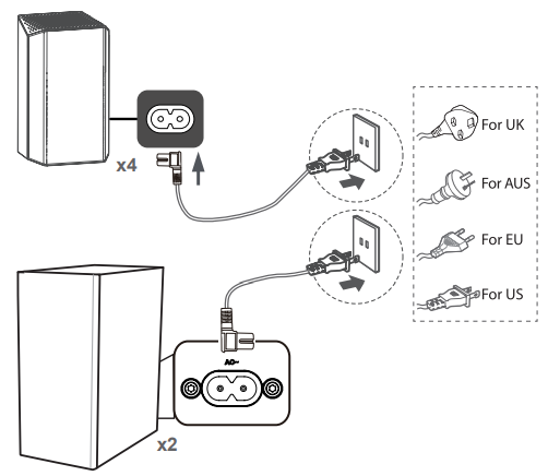 • Subwoofer Connect the main cable to the AC~ socket of the subwoofer and then to a main socket.AWOL-VISION-ThunderBeat-Home-Theater-Sound-System-FIGURE-12