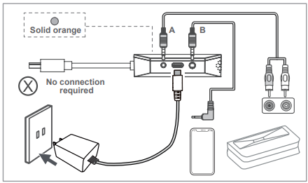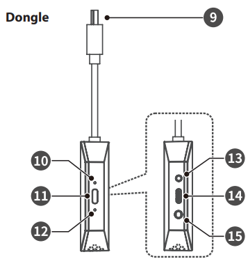 2. Dongle (LED 1 Indicators) Solid orange Use an RCA to 2.5mm audio cable to connect the Projector/TV/Laser TV’s audio output sockets to the Dongle’s 2.5mm Center output port.