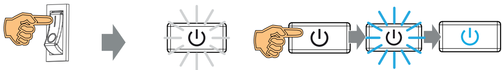 - Press the Power On/Off button on the local keypad, or the Power On button on the remote control. The power button will, after some seconds, illuminate solid blue, meaning that the projector is ON.