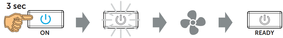 - Turn the mains switch to on ( I ). The projector will perform the startup sequence. When ready, the power button on the local keypad will illuminate white, meaning that the projector is in READY mode.