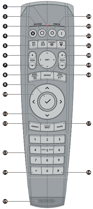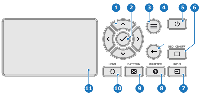 - Adjust the lens settings by pressing the lens menu button on the keypad or via the zoom, shift, and focus buttons on the keypad.