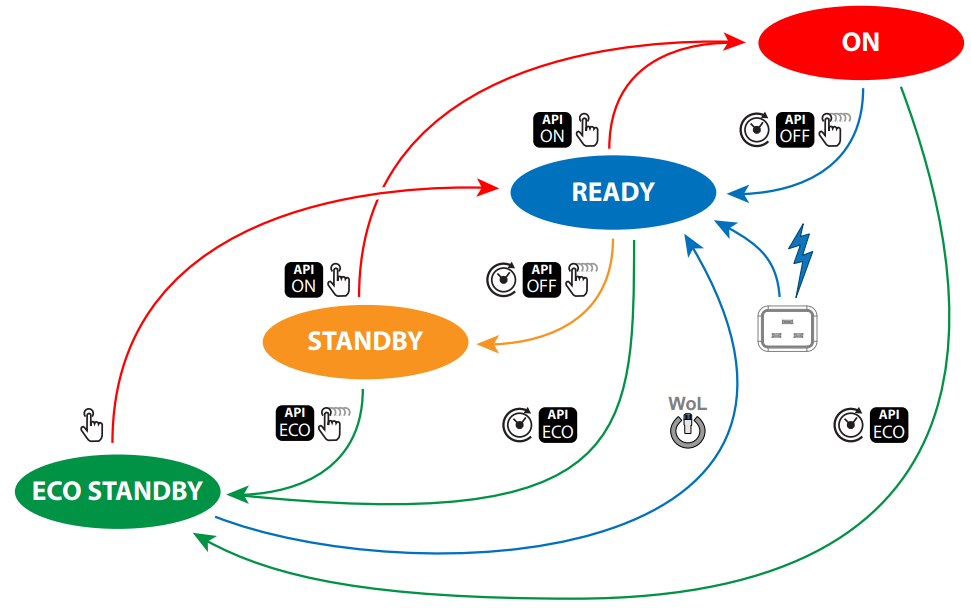 - While the projector is in STANDBY mode, press and hold the Power On/Off button on the local keypad, or the Power Off button on the remote control, to bring the projector into the ECO STANDBY mode.
