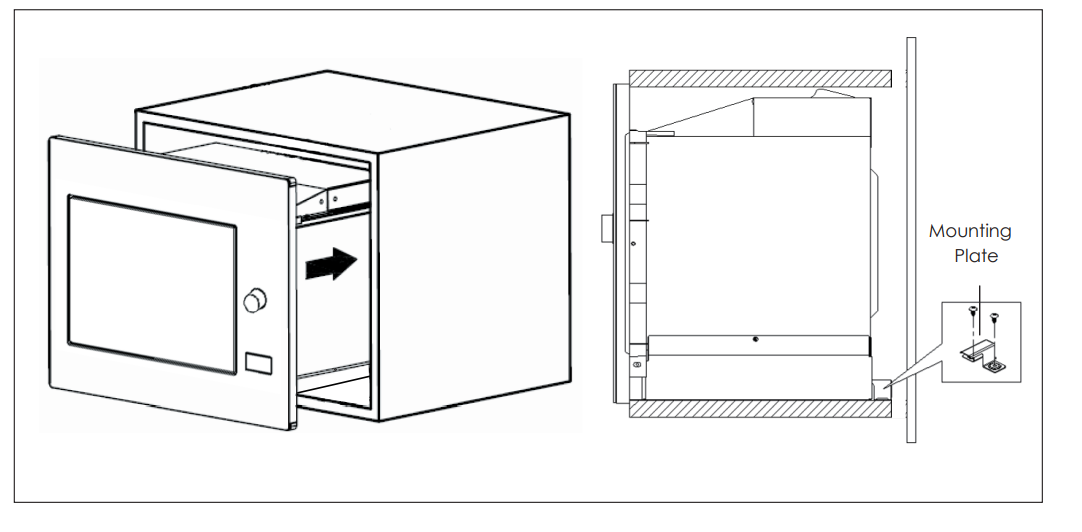 - Make sure the back of the oven is locked by the mounting plate