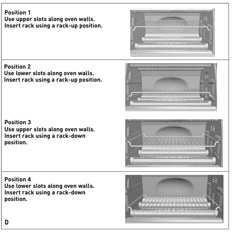There are four positions for the slide rack. It can be inserted in either the upper or lower slot. It can also be inverted for two additional positions.