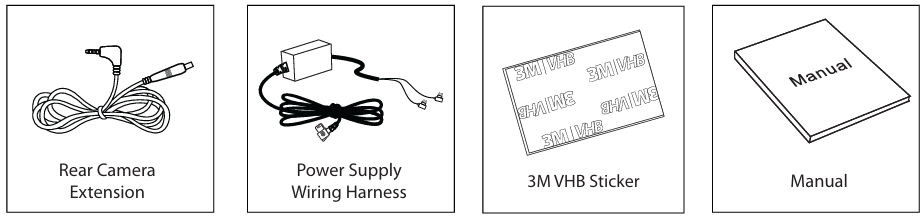 • Includes: Rear Camera Cable, Manual, 3M VHB Sticker, Wiring Harness