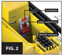 - After tripping, reset the safety switch to the ON position by lifting the switch lever upward.