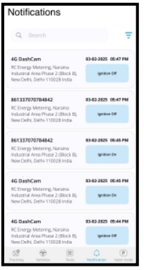 • Real-time alerts and notifications, for e.g., Overspeeding, Ignition ON/OFF& similar with date, time & address stamp.