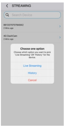 3. Select ‘Live Stream’ to remotely view the cameras in real time. Or select ‘History’ to view the previous recordings.