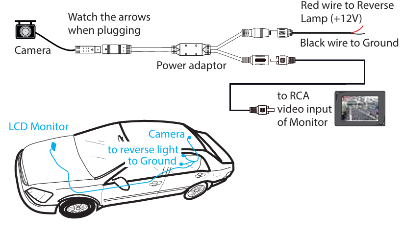 - The wiring diagram applies to most (but not all) camera models, and when making the connections, please also refer to the labels or marks on the wires