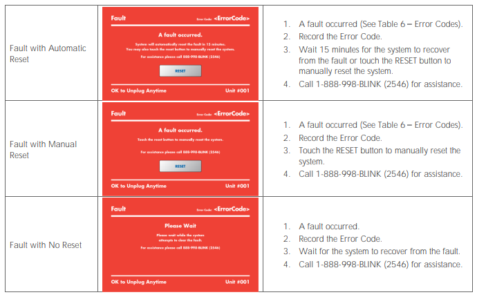 - After recovery from OC condition for 30 seconds, the Blink Product will automatically restart the charge session (for 3 times).