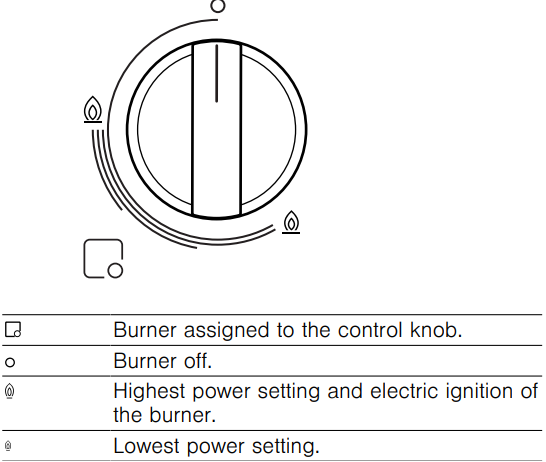 Only use cookware with a suitable diameter. The cookware must not protrude over the edge of the hob. Never use small cookware on large burners. The flames must not touch the sides of the cookware.