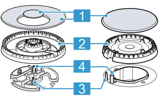 Insert the pan supports correctly. Never place the cookware directly on the burner. Always carefully remove the pan supports. When moving a pan support, the pan supports next to it may also move. - Burner