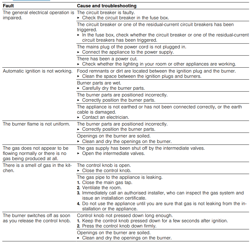 You can rectify minor faults on your appliance yourself. Read the troubleshooting information before contacting after-sales service. This will avoid Bosch PNK6B.K4.A Built-In Gas hob has unnecessary costs.