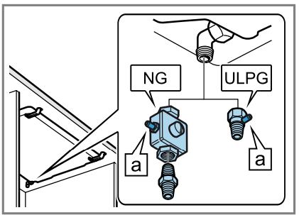 - Fit a regulator (N.G.) or a test point (Universal LPG) directly to the R 1/2 connection.