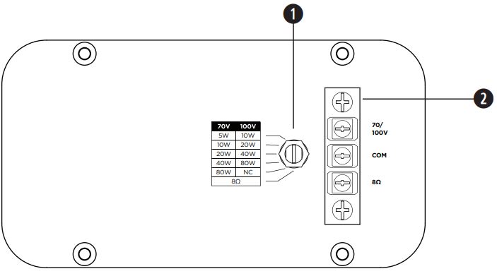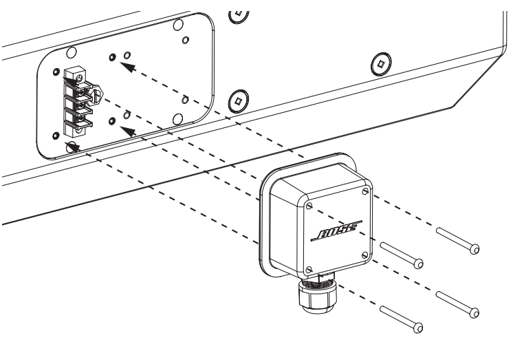 ArenaMatch Utility loudspeakers are shipped with the rear input panel cover not installed. Once you’ve made input wiring connections, secure the cover over the input panel with the included M4 screws.