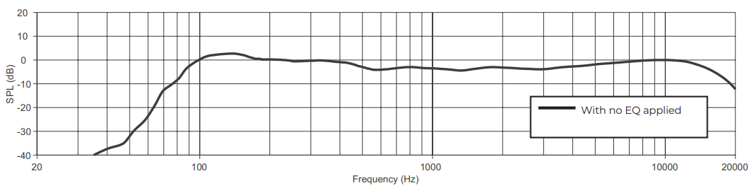 Clear vocals, instruments, and high-frequency detail appropriate for live sound and playback applications are provided by the speaker’s full-range response, which ranges from around 65 Hz to 18 kHz.