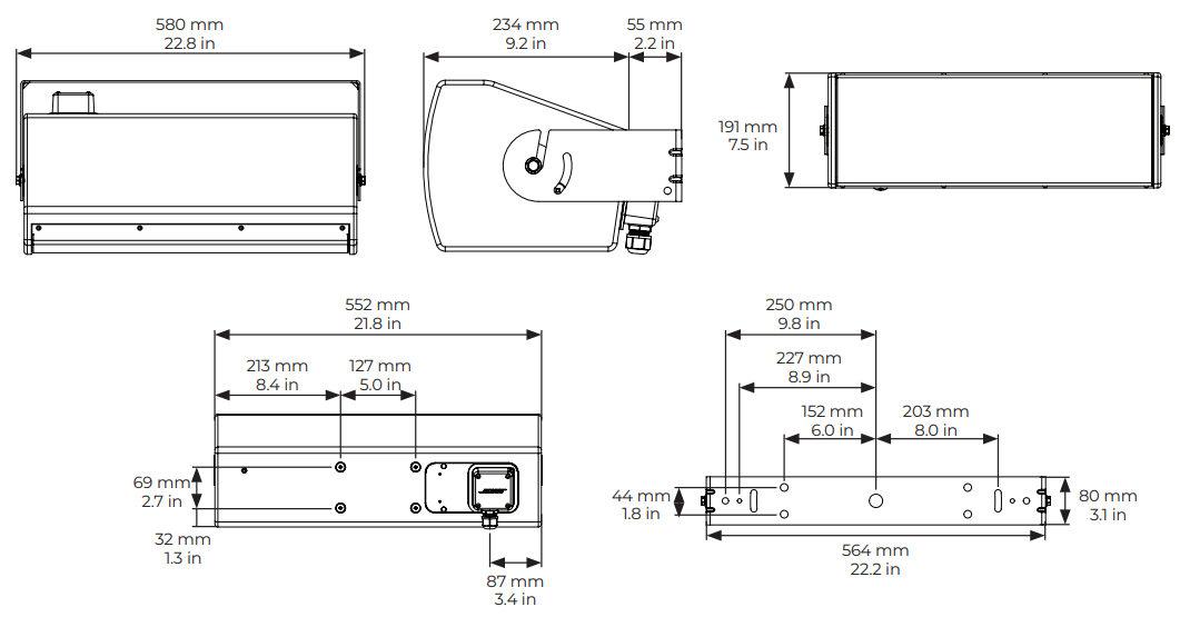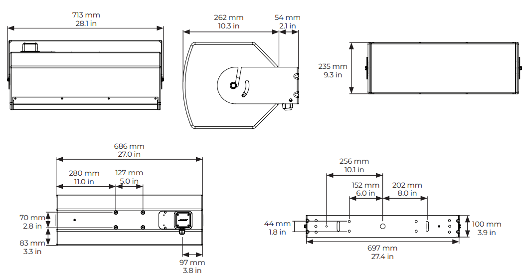 Product net weight: 10.6 kg (23.3 lb) / 12.6 kg (27.7 lb) with U-bracket.