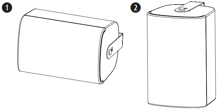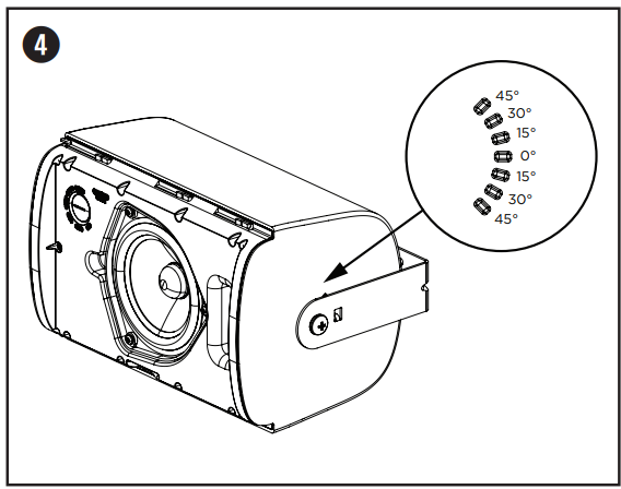 - Align the pins on the mounting bracket with the angle slots appropriate for your installation and snap the bracket into the loudspeaker.
