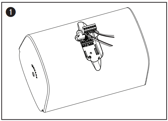 - Attach the wired connector to the loudspeaker.