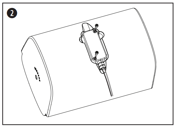 - Place the input cover over the connector and press it firmly against the loudspeaker to create a tight seal. Use the two included input cover screws to secure the input cover.