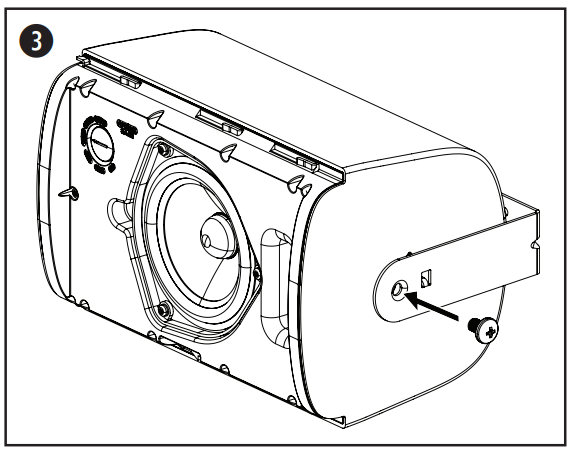 - Tighten the screws on both sides of the loudspeaker to secure the loudspeaker to the mounting bracket. Do not over-torque the screw.