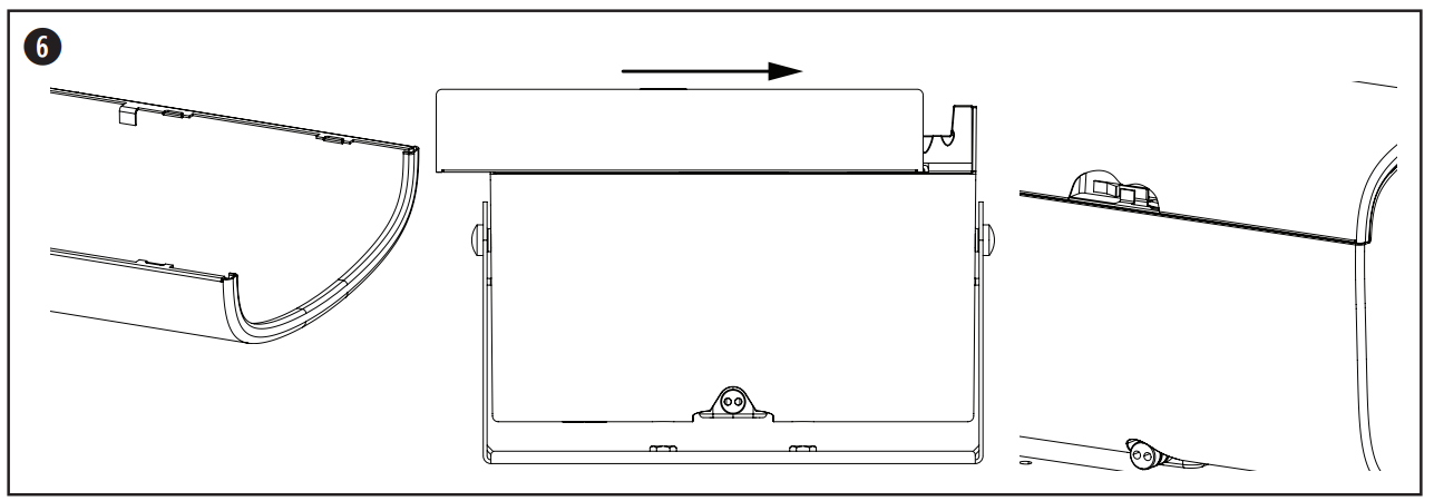 - Hold the loudspeaker in between the bracket arms and insert one of the included bracket screws into each side of the loudspeaker using the threaded inserts.